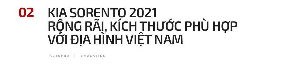 Anh Thiện Tâm nhận xét, Kia Sorento 2021 có kích thước hợp lý để sử dụng tại Việt Nam. Chiều dài khoảng hơn 4,8m, bề ngang 1,9m và khoảng sáng gầm 176 mm.